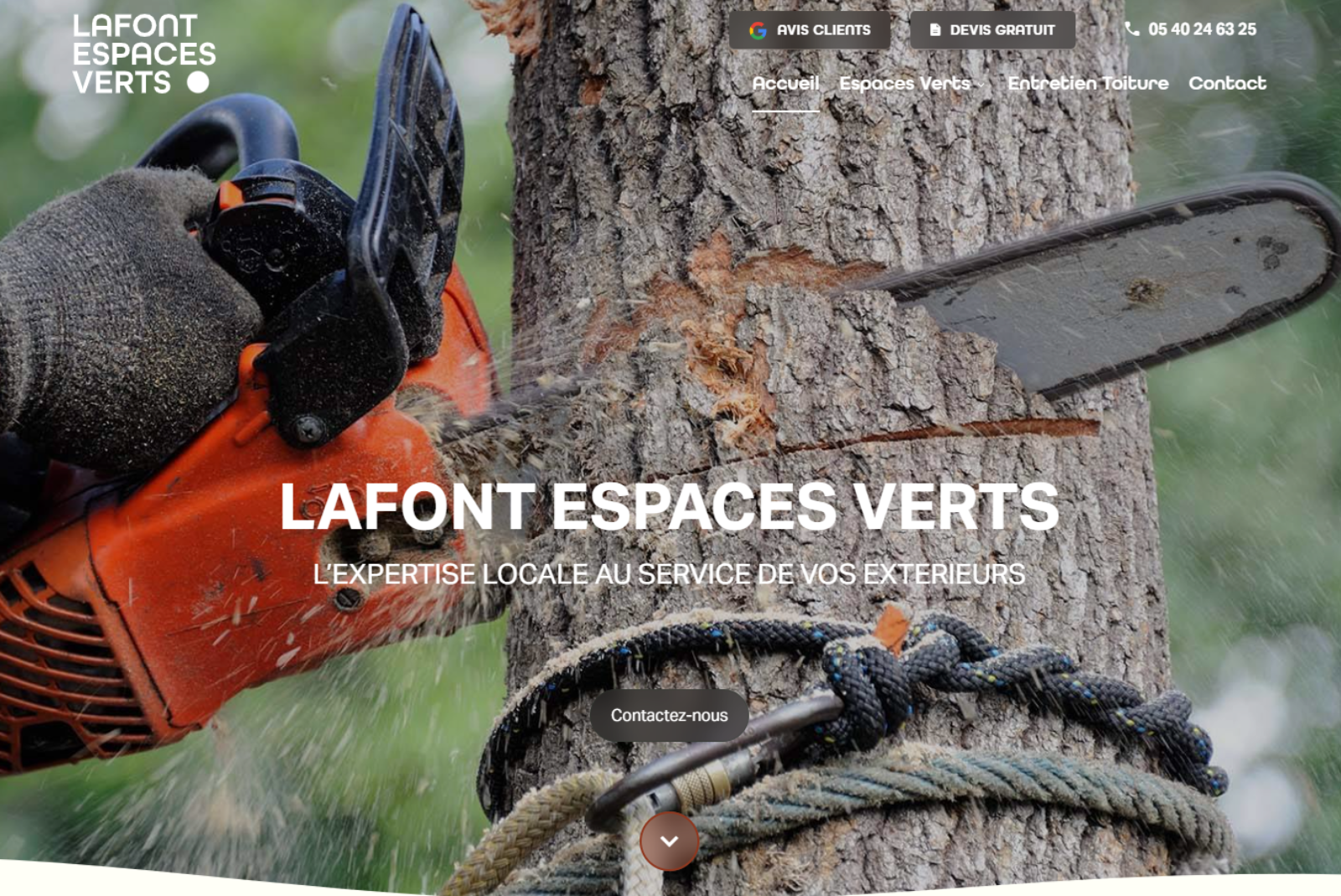 Nous avons conçu un site responsive, optimisé pour le SEO local, avec une navigation fluide et un design moderne. Des pages dédiées aux services spécifiques à l'activité espaces verts ont été créées, intégrant des mots-clés tels que "entretien d'espaces verts Saint Gaudens", "entretient de toiture à Cazères", et "Elagage d'un arbre dangereux trop proche d'une maison à Saint Gaudens". Un accompagnement SEO a également été fourni pour améliorer le classement du site sur des requêtes locales.